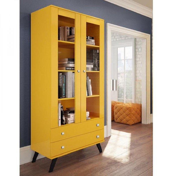 Cristaleira 2 Portas de Vidro e 2 Gavetas Retrô Amarela Arte casSeu visual leve destaca ainda mais os objetos que se encontram nela, por isso é ideal para organizar objetos decorativos e livros.Especificações Técnicas:- Marca: Arte cas