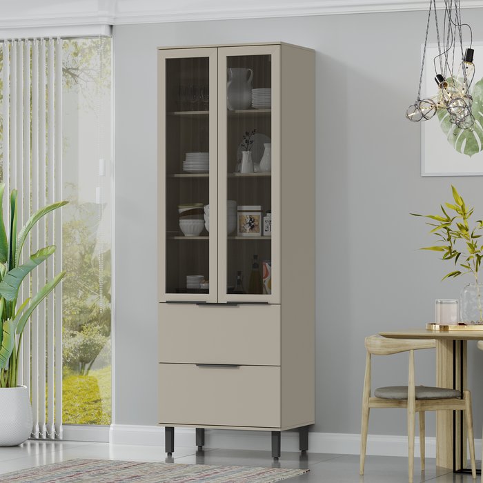Cristaleira 2 Portas de Vidro Florença 100% Mdf Fendi/Castanho