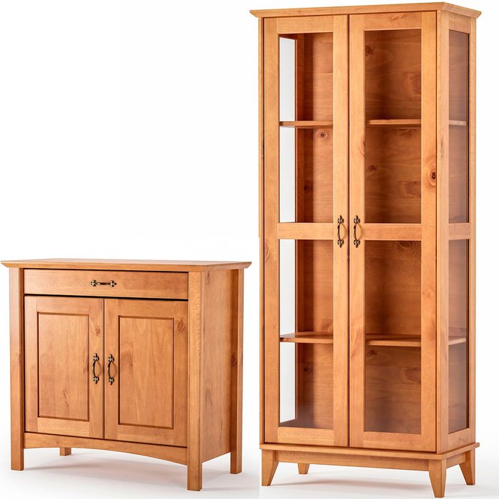 Cristaleira 2 Portas de Vidro e Buffet Aparador 93 cm 100% Madeira Bella Casa Chick