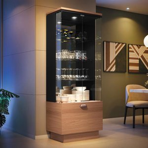 Requinte e sofisticação são os sinônimos da cristaleira Ágata, com aspecto suave e minimalista traduzem a versatilidade de um produto que foi desenvolvido para embelezar o ambiente. Com medidas de 1.750mm de altura, 800mm de largura e com 405mm de profundidade, é perfeita para guardar louças, bebidas e objetos de decoração, deixando qualquer ambiente moderno e clean. Com frentes em MDF, possui portas com detalhes usinados e vidro incolor, puxadores pontuais, dobradiças de 35mm proporcionando maior sutileza na abertura e fechamento, tem 02 gavetas externas com corrediças telescópicas possibilita fechamento mais suave, pés em ABS cônicos.
