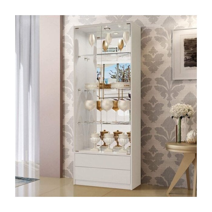 Cristaleira 2 Portas Vidro 2 Gavetas Esmeralda Plus Mavaular Off White