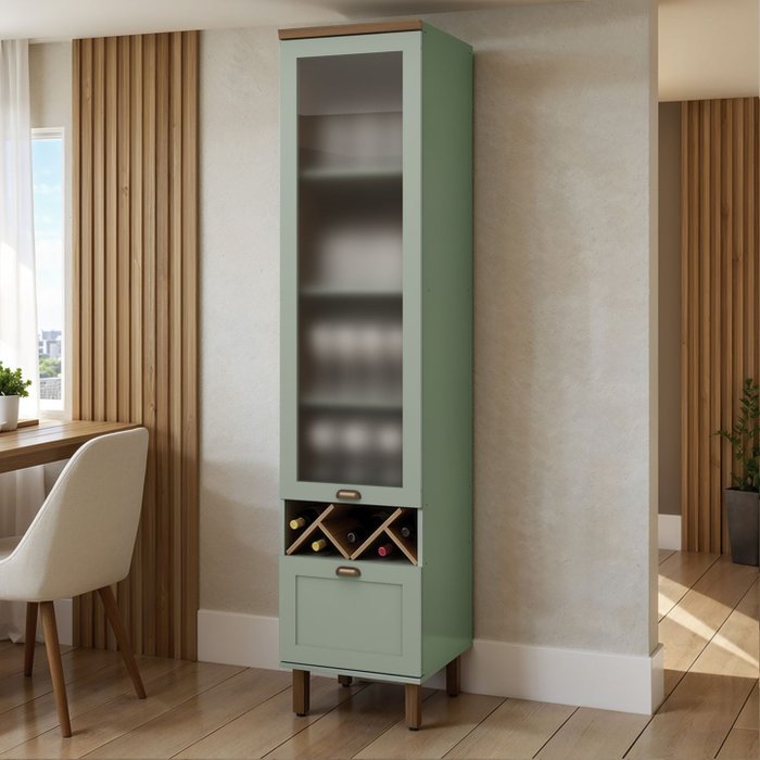Cristaleira 50cm Porta de Vidro e 1 Gavetão para Cozinha Mdf Cor:mint com Ébano
