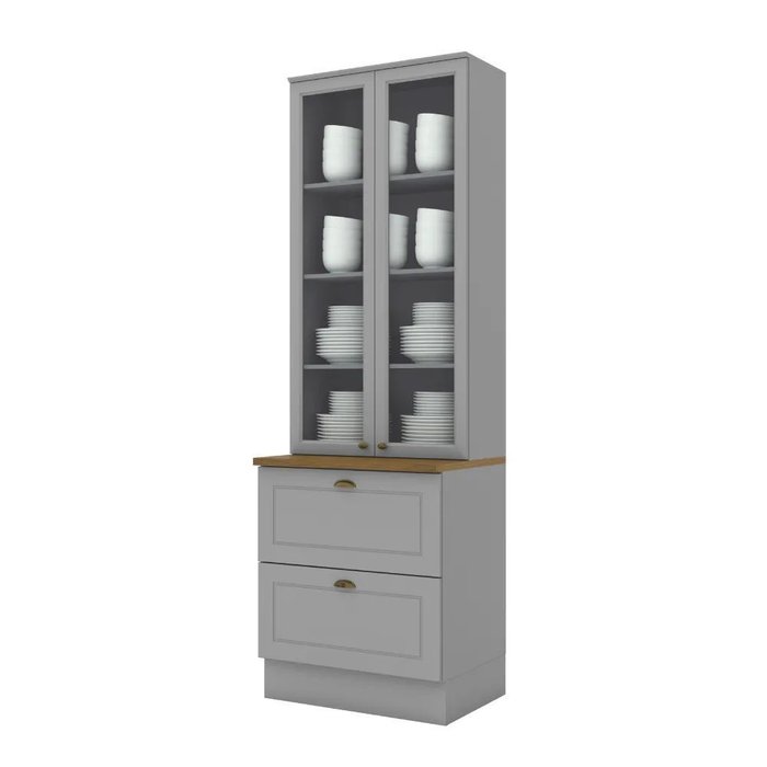 Cristaleira 71,5cm 2 Portas 2 Gavetas Emily Henn Cinza/Nature