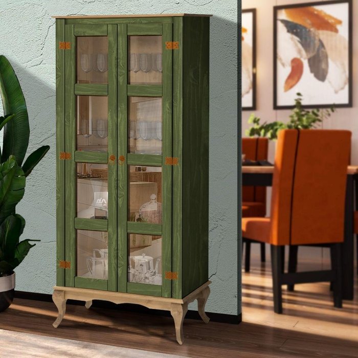 Cristaleira Antiga Madeira Maciça Com Portas Em Vidro Verde Shop JM Verde