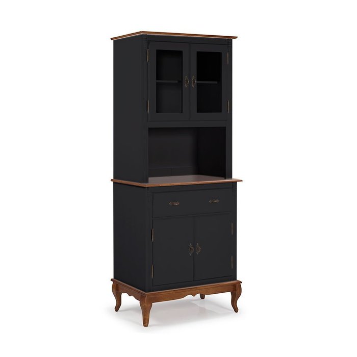 Cristaleira Arca e Oratório 4 Portas 1 Gaveta com Pés Luis Xv 60630 Linz Móveis - Preto/Imbuia