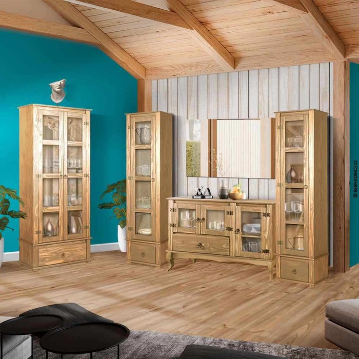 Cristaleira Balcão e 2 Torres Madeira Rústica Pés Luis Xv Mel Jm Móveis