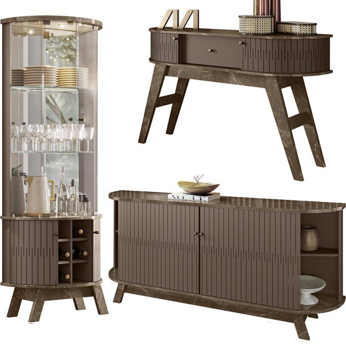 Cristaleira Buffet E Aparador Para Sala Mamorest Imperial Sepia MDT