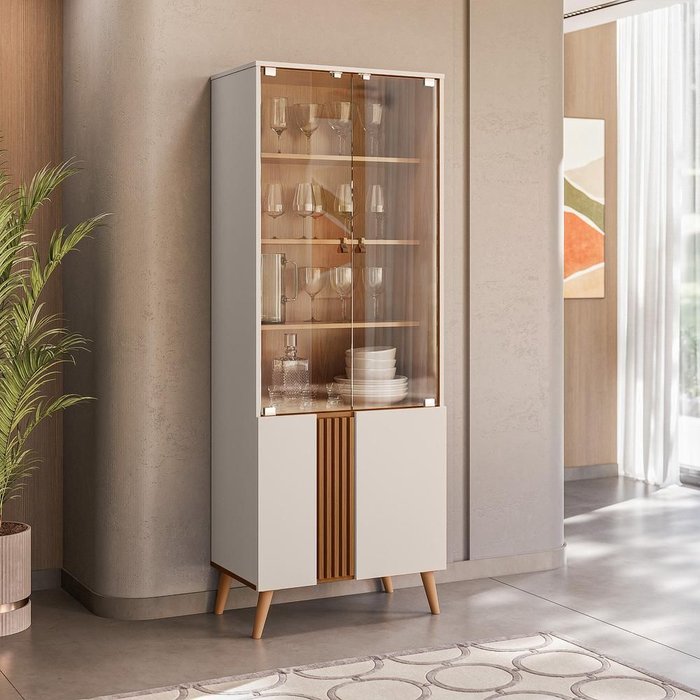 Apoiado em seus 4 pés chanfrados que garantem estabilidade e sofisticação na medida certa.Com um design que une o charme do detalhe ripado com a leveza das portas de vidro, a Cristaleira Capri é ideal para destacar seus itens favoritos e organizar sua sala de jantar ou estar com elegância.Características Técnicas
