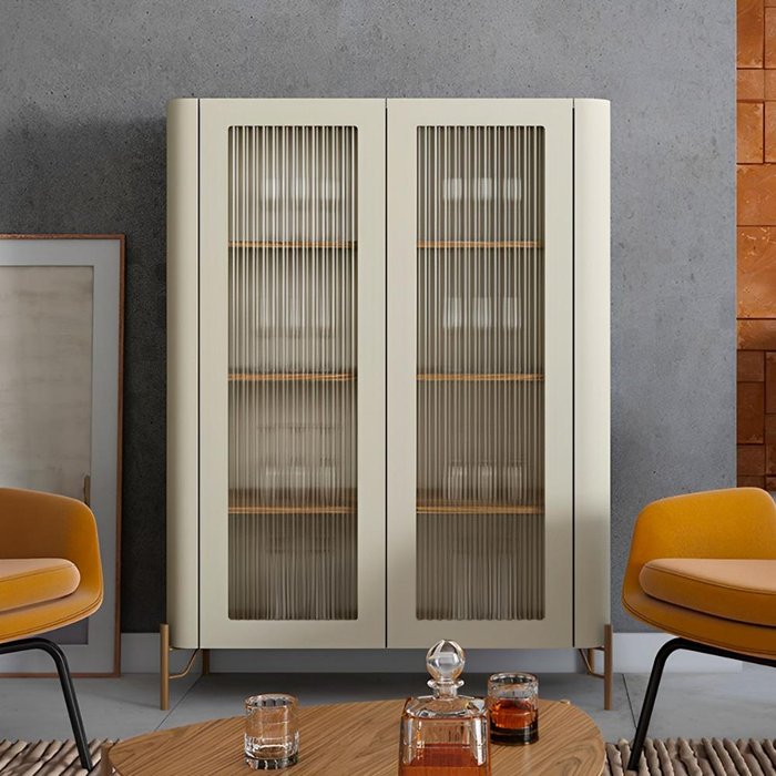 A Linha Bend traz tendência e inovação com um toque de arte. A Cristaleira combina Elegância clássica com um Design Contemporâneo de linhas curvas e orgânicas. Seu visual sofisticado é acentuado pelas portas com Frentes de Vidro Canelado, que adicionam um charme texturizado e permitem exibir delicadamente seus objetos decorativos ou coleções. Fabricada com materiais de alta qualidade e acabamento refinado, esta peça não só proporciona um espaço seguro para armazenar cristais e porcelanas, mas também serve como um elemento de destaque na decoração.