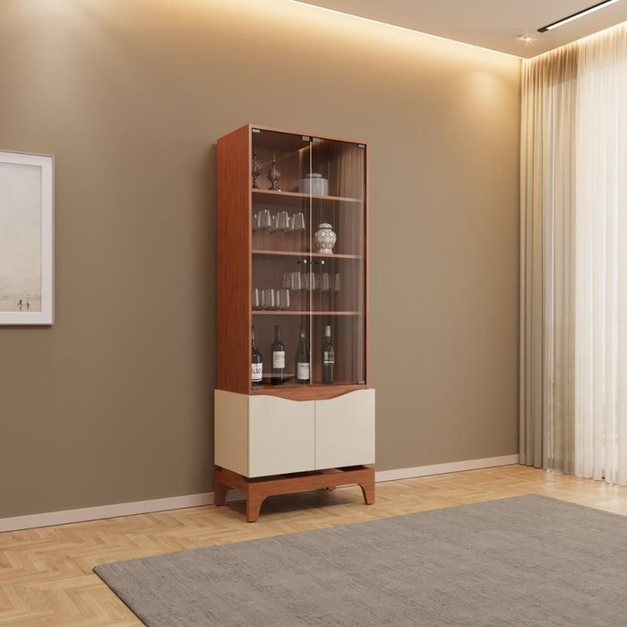 Cristaleira com 4 Portas e 3 Prateleiras Dj Móveis Joile Freijó Off White