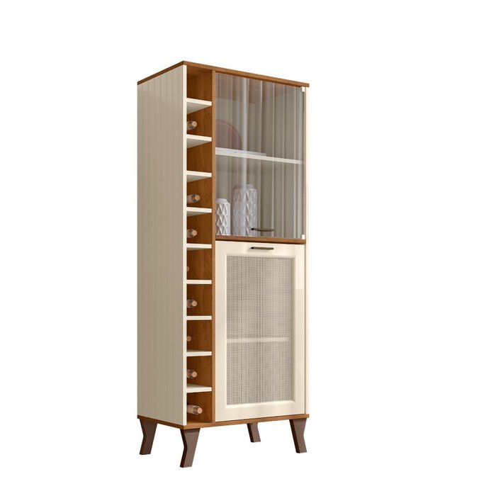 Cristaleira com Adega em Mdf Porta de Vidro 10 Nichos Life:nature / Off White Nature / Off White