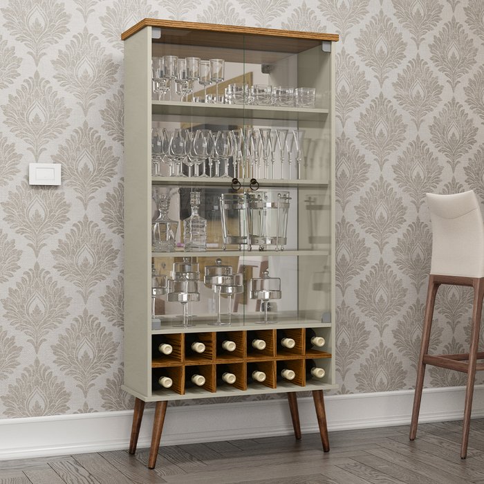 Cristaleira com Adega Retrô para Apartamento Seller Patrimar Móveis:Off White/Cumaru