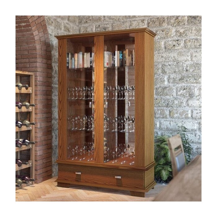 Cristaleira com Espelho 2 Portas em Vidro 1 Gaveta Ornare Imcal Freijó