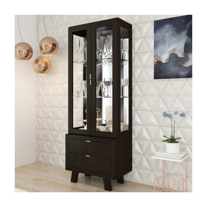 Cristaleira com Espelho 2 Portas em Vidro 2 Gavetas Cr6001 Tecno Mobili Tabaco