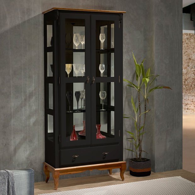 Se você está procurando uma vitrine deslumbrante que mostrará seus itens favoritos com estilo, não procure mais, pois a Cristaleira com Espelho e LED 60303EL Linz Móveis foi projetada pensando em você! O design de duas portas de vidro e uma gaveta desta cristaleira moderna oferecem um amplo espaço de armazenamento, enquanto as três prateleiras de vidro oferecem praticidade e espaço, o fundo espelhado juntamente com as laterais em vidro, acrescenta outra dimensão à sua vitrine criando um efeito visualmente impressionante, e a luz LED traz sofisticação e elegância para a peça. Produzida em Madeira Maciça para tons amadeirado em verniz e MDF nos tons coloridos com acabamento laca, materiais de alta qualidade e durabilidade, esta cristaleira de vidro e madeira com certeza vai impressionar. Encomende a sua hoje e eleve a decoração de sua casa ao próximo nível.