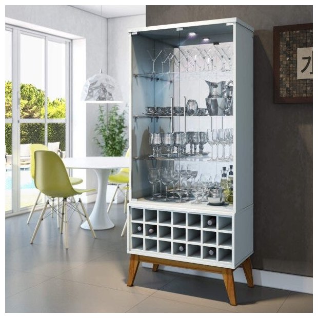 Olha essa linda Cristaleira com Adega e Espelho 2 Portas em Vidro Classic Retrô, ela é perfeita, pois une a sofisticação com modernidade e os pés dão um toque retrô. Estrutura em MDP 15mm e 25m; portas e prateleiras em vidro temperado 4mm; pé em madeira maciça; puxador de alumínio polido; adega com capacidade para 21 garrafas; luminária LED (bivolt). Esse produto pode ser utilizado separado ou junto com o Rack e Painel Classic.