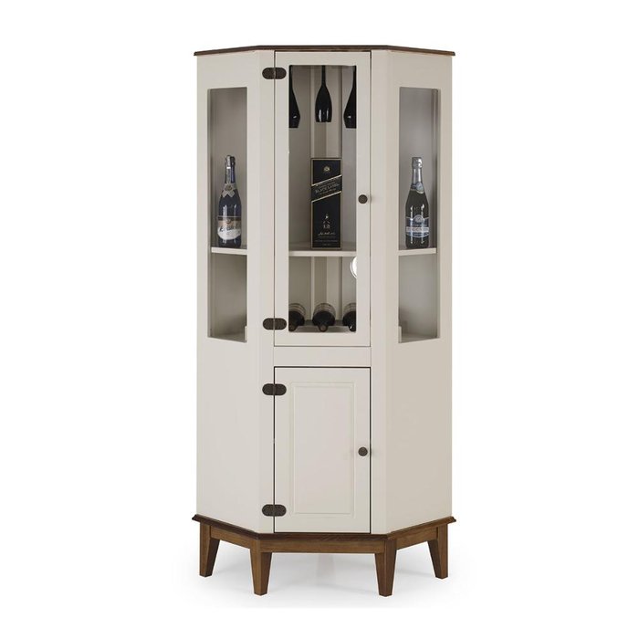 A Cristaleira de Canto de Madeira Maciça OFF WHITE La Decora conta com 2 portas e prateleiras que vão ajudar na organização do seu lar, trazendo ainda mais charme para o ambiente. Uma peça com estilo rústico atemporal, que pode ser utilizada em qualquer estilo, sendo apenas uma cristaleira ou também um lindo bar com adega, agregando mais aconchego ao lar. Esta cristaleira é produzida em Madeira Maciça Pinus Taeda e MDF, proveniente de florestas renováveis, que unidos às diversas técnicas e tecnologias de produção da Wilfama, garantem ao produto maior vida útil e durabilidade. A resistência da Cristaleira de Madeira Maciça também está em sua pintura em Laca, com qualidade superior de acabamento e maior durabilidade aos desgastes naturais. O toque final está nos seus puxadores de metal e portas com vidro, que aprimoram ainda mais o estilo marcante do produto, unindo beleza e funcionalidade. Características