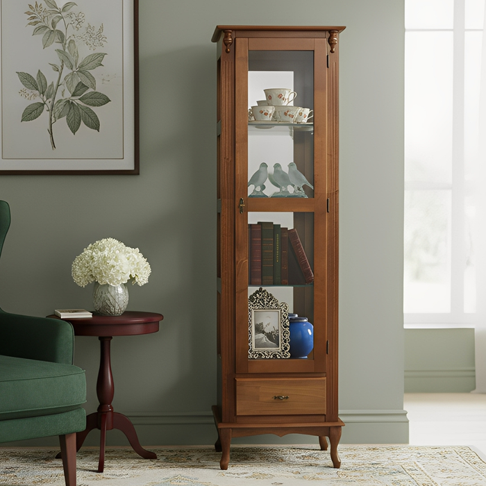 Cristaleira de Madeira 1 Porta 1 Gaveta e Espelho com Pés Luiz Xv - Imbuia Glazer