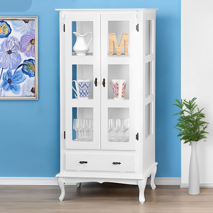 Cristaleira de Madeira 2 Portas 1 Gaveta e Pés Luiz Xv - Branco Laca