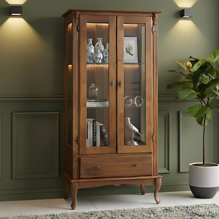 Cristaleira de Madeira 2 Portas 1 Gaveta Fundo com Espelho Pés Luiz