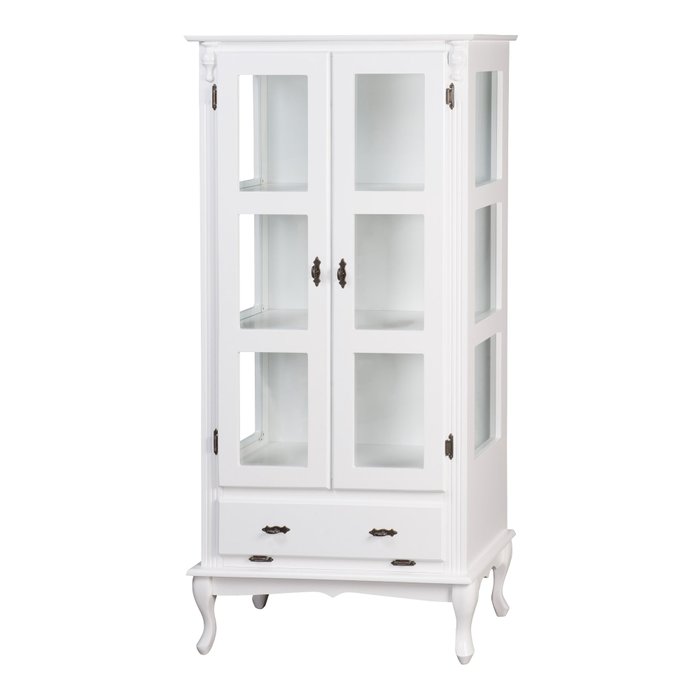 Cristaleira de Madeira 2 Portas de Vidro e 1 Gaveta Cor Branco