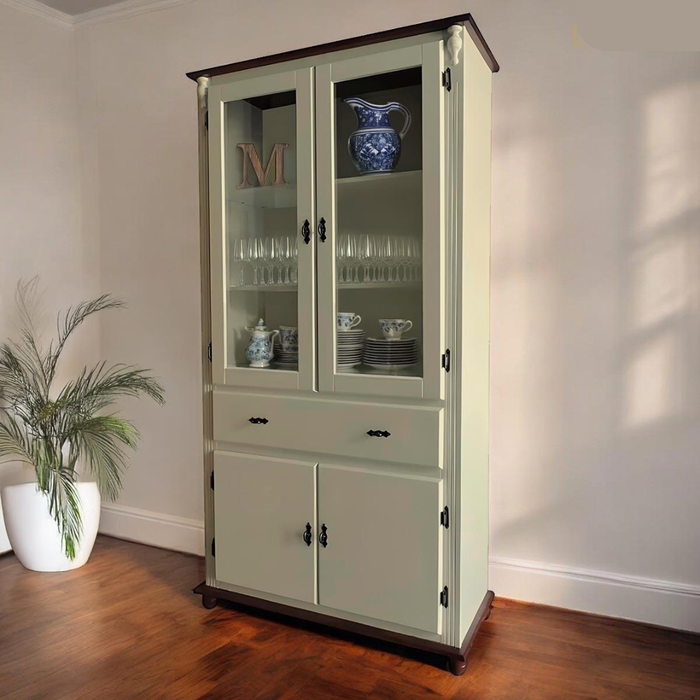 Cristaleira de Madeira 4 Portas 1 Gaveta Pés Torneados 308- Verde Chá com Tampo e Base Imbuia Glazer