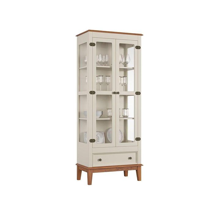Cristaleira de Madeira Maciça 2 Portas + 1 Gaveta Off White Off White
