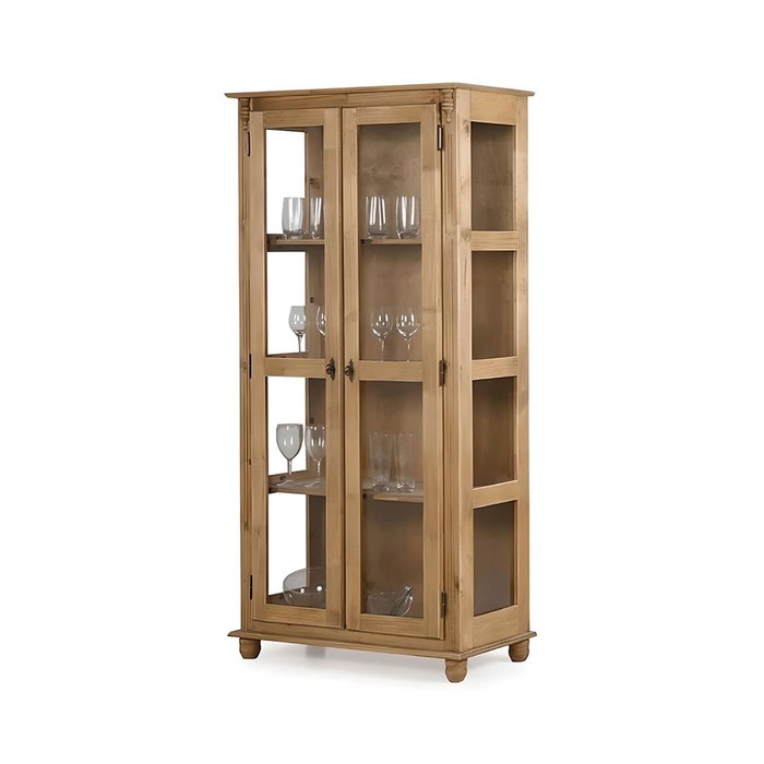 Cristaleira de Madeira Maciça 2 Portas 3 Prateleiras Pés Torneados Florença 301 - Cera Clara Cera Clara