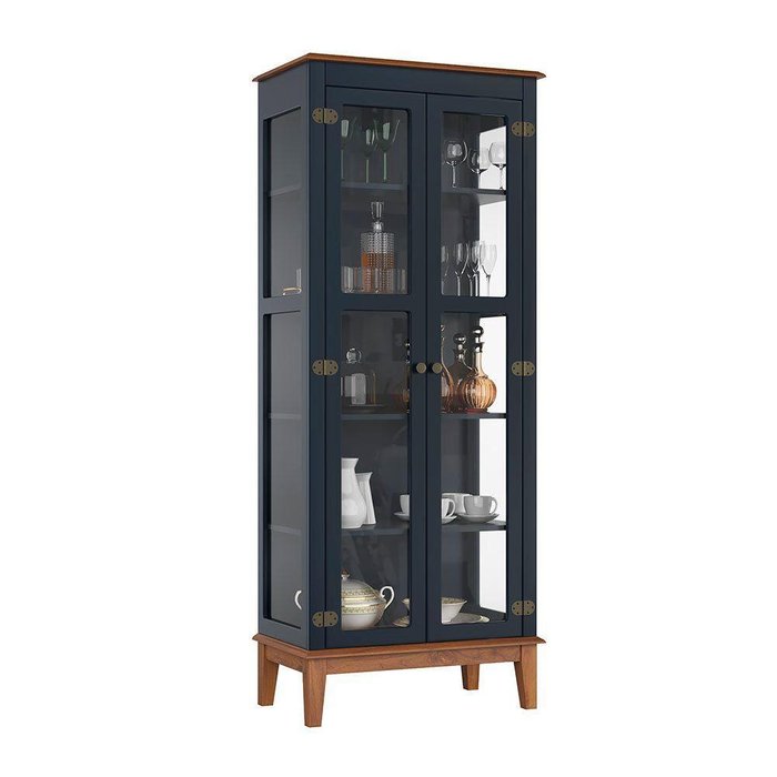 Cristaleira De Madeira Maciça 2 Portas - Azul Petróleo