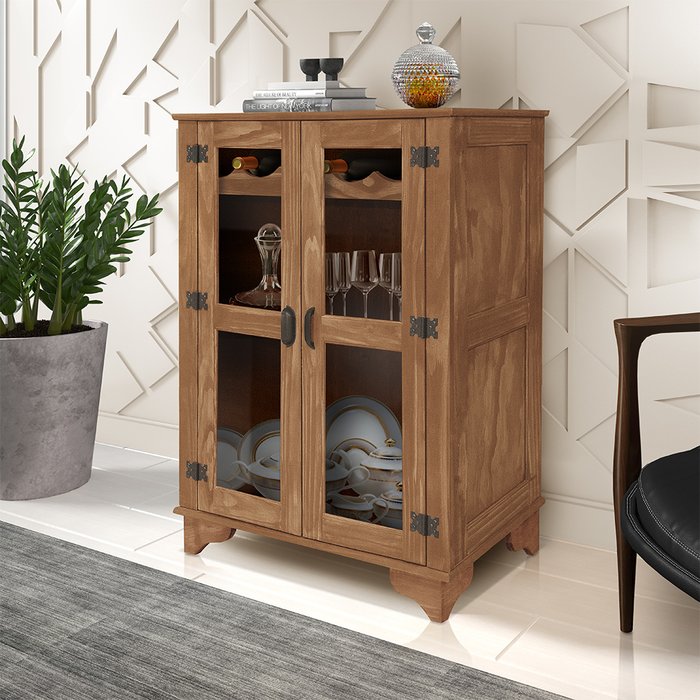 Cristaleira de Madeira Maciça Arvid e Vidro Imbuia Atraente Móveis