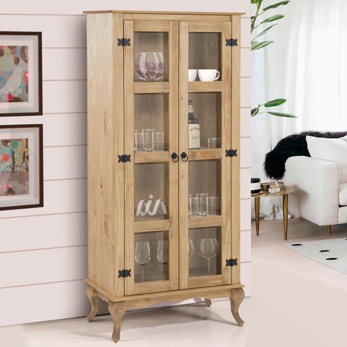Dimensões do Produto: Largura 80 cm; Profundidade 36 cm; Altura 175,7cm.Itens Inclusos: 1 cristaleira.- Madeira maciça em Pinus (madeira de reflorestamento)- 02 portas com dobradiças metálicas- Vidros de 3mm para expor taças, copos e peças favoritas- 04 nichos para melhor organização dos objetos- Acabamento em pintura UV com brilho semi fosco- Design rústico, ideal para trazer personalidade e elegância ao ambiente- Pés com design Luís XVComplexidade da montagem: Média, pode ser montado por mais de uma pessoa e/ou necessite de maior conhecimento para montagem.Recomendações de uso, manutenção e limpeza: Limpar com flanela ou pano macio seco, não utilizar produtos abrasivos, desengordurantes, álcool ou solvente. Não expor o produto diretamente a luz solar e à umidadeGarantia: 3 meses