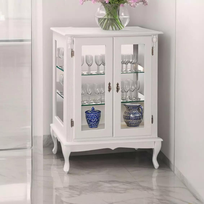 Cristaleira em Madeira 2 Portas e Espelho com Pés Luiz Xv - Branco Laca Branco Laca