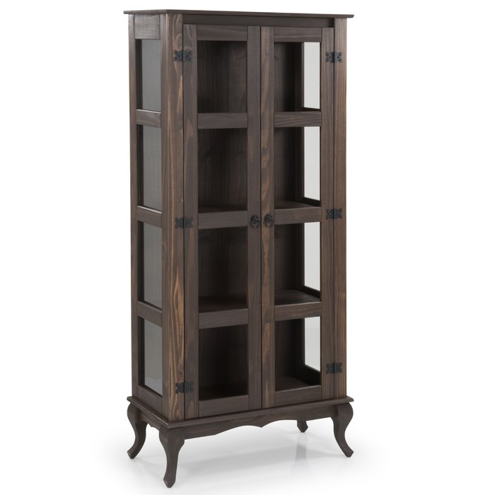 Cristaleira em Madeira Maciça com 2 portas Marrom Escuro