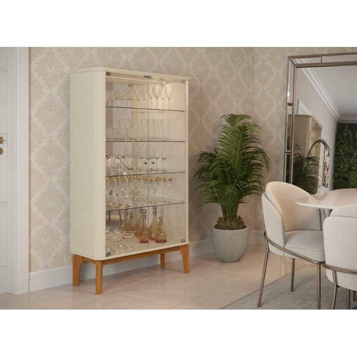Cristaleira Fl Estilo Retrô com Iluminação em Led Cor Off White