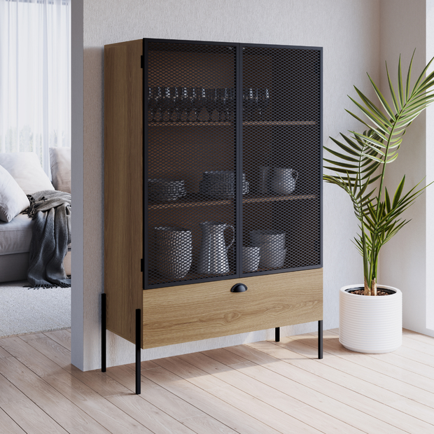 A Cristaleira York é moderna, urbana e autêntica, móvel produzido em MDP 15mm com acabamento em BP, as portas são em aço com detalhes de chapa expandida, acabamento em pintura epóxi fosca e fecho magnético, a gaveta tem puxador metálico e corrediça telescópica com extração total. Cristaleiras são peças ideais para agregar um toque especial ao ambiente, a linha York é moderna e tem uma pegada industrial, torna-se a opção ideal para quem gosta de personalidade e praticidade na hora de decorar.