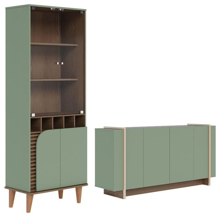 Cristaleira Jurerê e Aparador Buffet para Sala Copacabana Hortelã Amendôa – Colibri