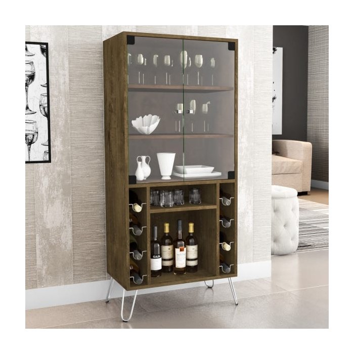 Elaborado em MDP com espessura de 15mm, 4 Prateleiras , 2 portas de vidro com puxadores cromados, 4 pés fixos metálicos e 8 nichos.