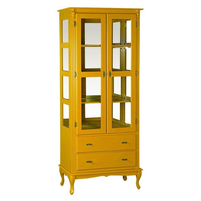 Cristaleira Luiz Xv Com 2 Portas de Vidro e 2 Gavetas 1085e Amarela Amarelo