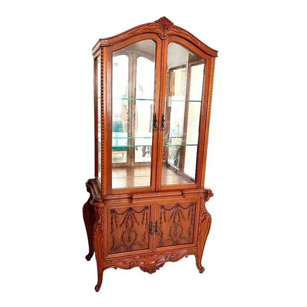 Cristaleira Madeira de Lei Classicos Entalhes Fundo Espelhado Vidros Bisotados