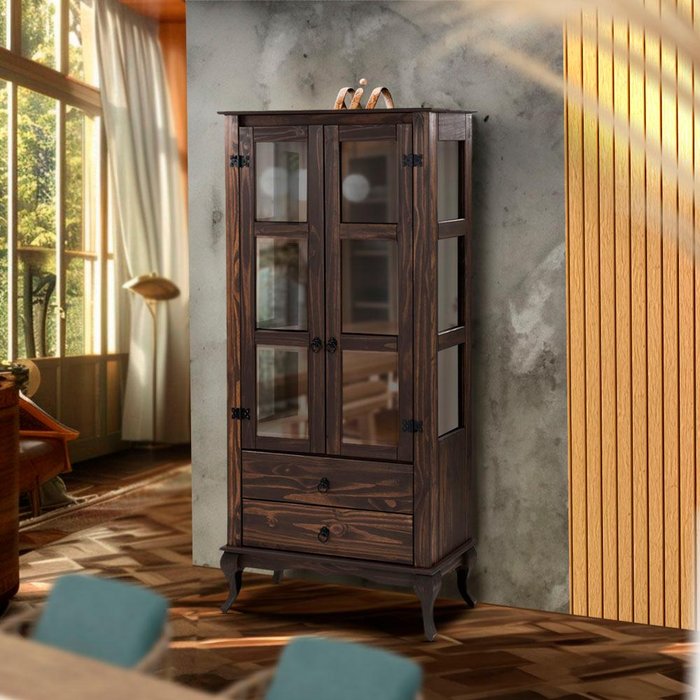 Cristaleira Madeira Maciça 2 Portas Vidro Lateral Imbuia