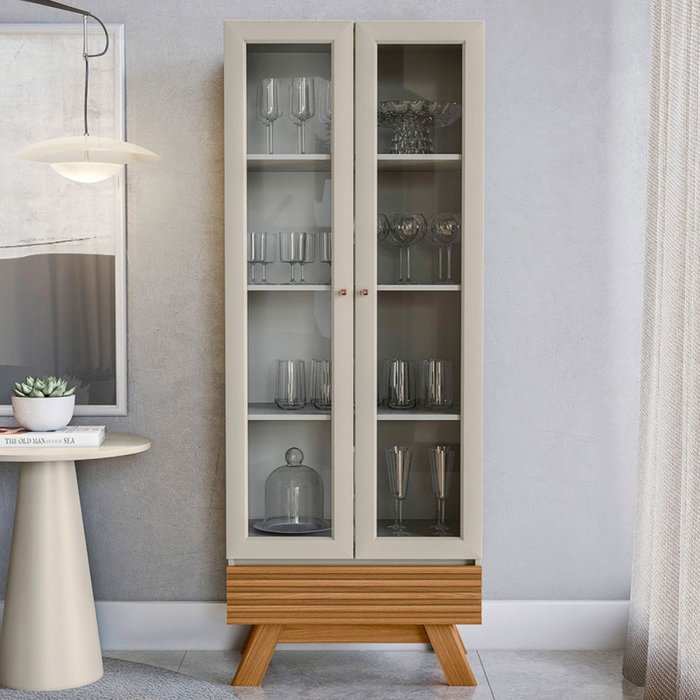 Cristaleira Marsala 2 Portas 3 Prateleiras Nature/off White - Linea Brasil