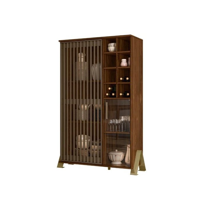 Caracteristicas: Adega Lateral; Puxador E Porta Ripada Em Mdf Revestidos Na Cor Bronze; Porta De Vidro; Pés De Metal Maciço Curvos E Pé Reto, Com Pintura Epóxi De Alta Resistência Na Cor Dourada