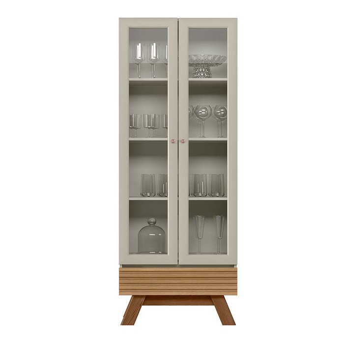 Cristaleira Retrô 1,85 X 0,71 com 2 Portas 01 Gaveta Nanterre Edecasamoveis 810010102_Off White Fosco e Amendoa