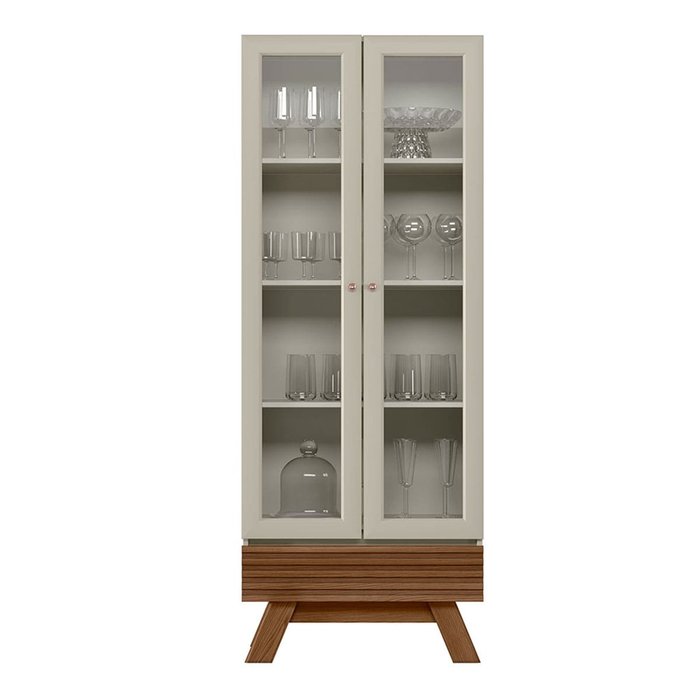 Cristaleira Retrô 1,85 X 0,71 com 2 Portas 01 Gaveta Nanterre Freijó/off White - Edecasamoveis Nature/Off White, Freijó/Off White, Amêndoa/Off White