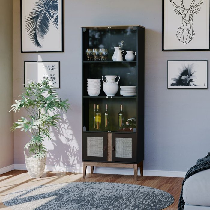 Cristaleira Retrô 70cm MB 1005 Movelbento - MB Freijó/Preto