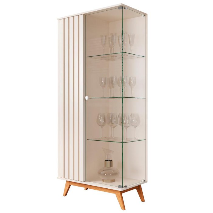 Cristaleira Ripada com 3 Prateleiras de Vidro Dijon Pérola Perola
