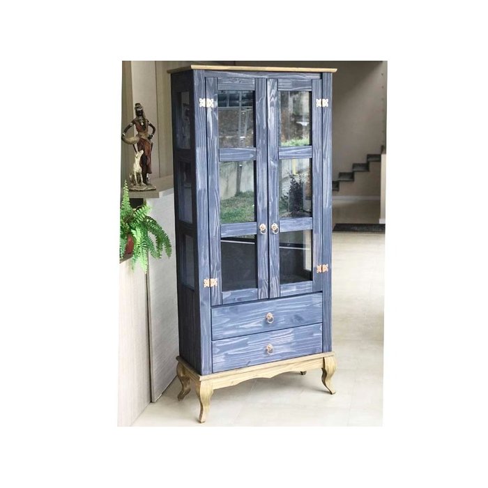 Cristaleira Rustica 2 Portas e 2 Gavetas Azul