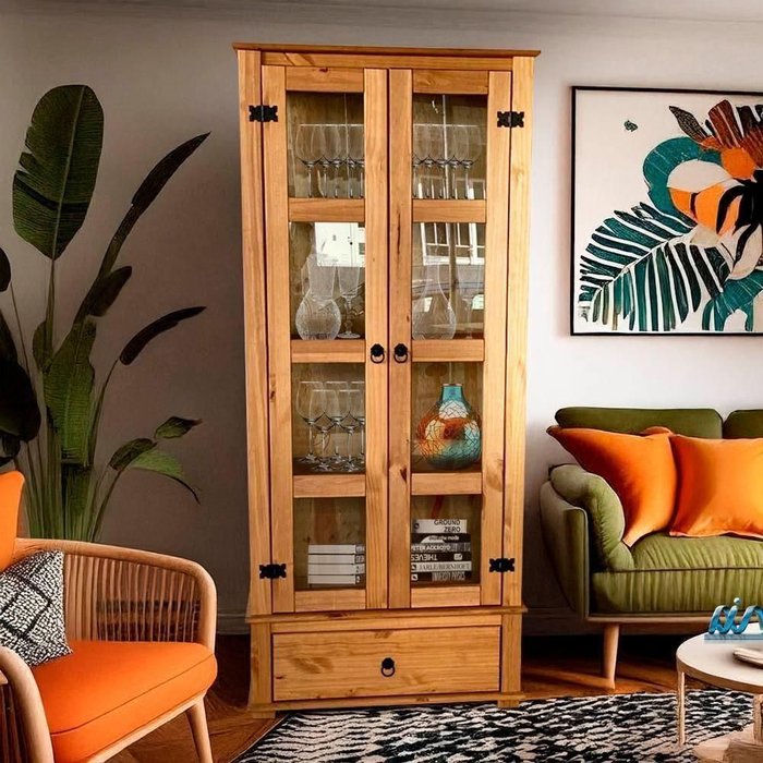 Cristaleira Rústica Madeira Maciça 2 Portas Vidro Lateral Mel D106vl Denk Mel