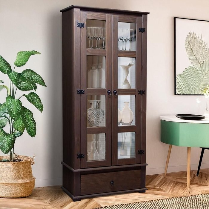 Cristaleira Rústica Madeira Maciça com 2 Portas de Vidro Imbuia