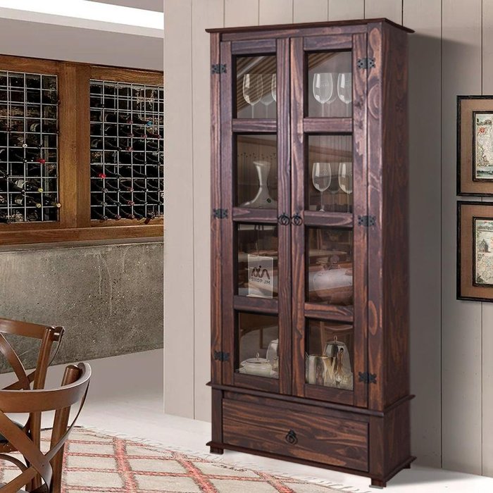 Cristaleira Rústica Para Sala De Jantar Madeira Maciça 2 Portas Imbuia Shop JM